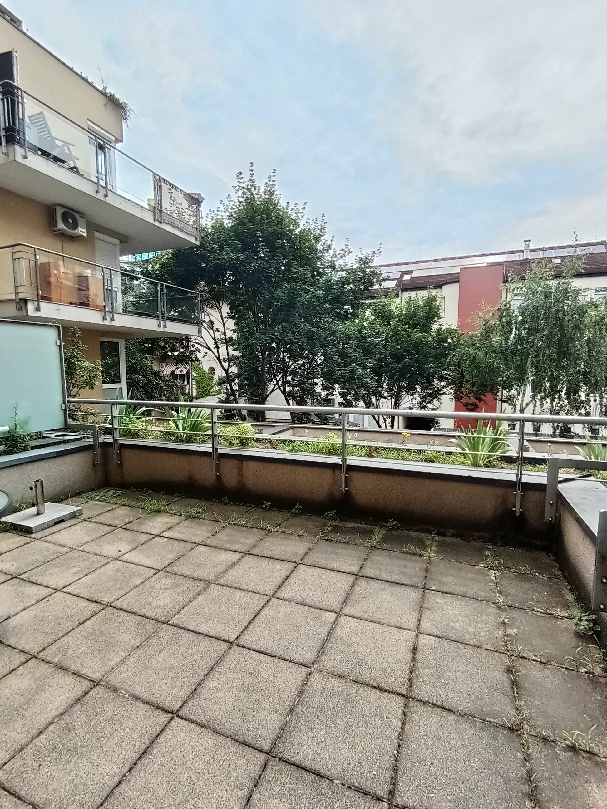 Nagyon csendes, a 12 m2-es erkélye a belső kertre néz.
