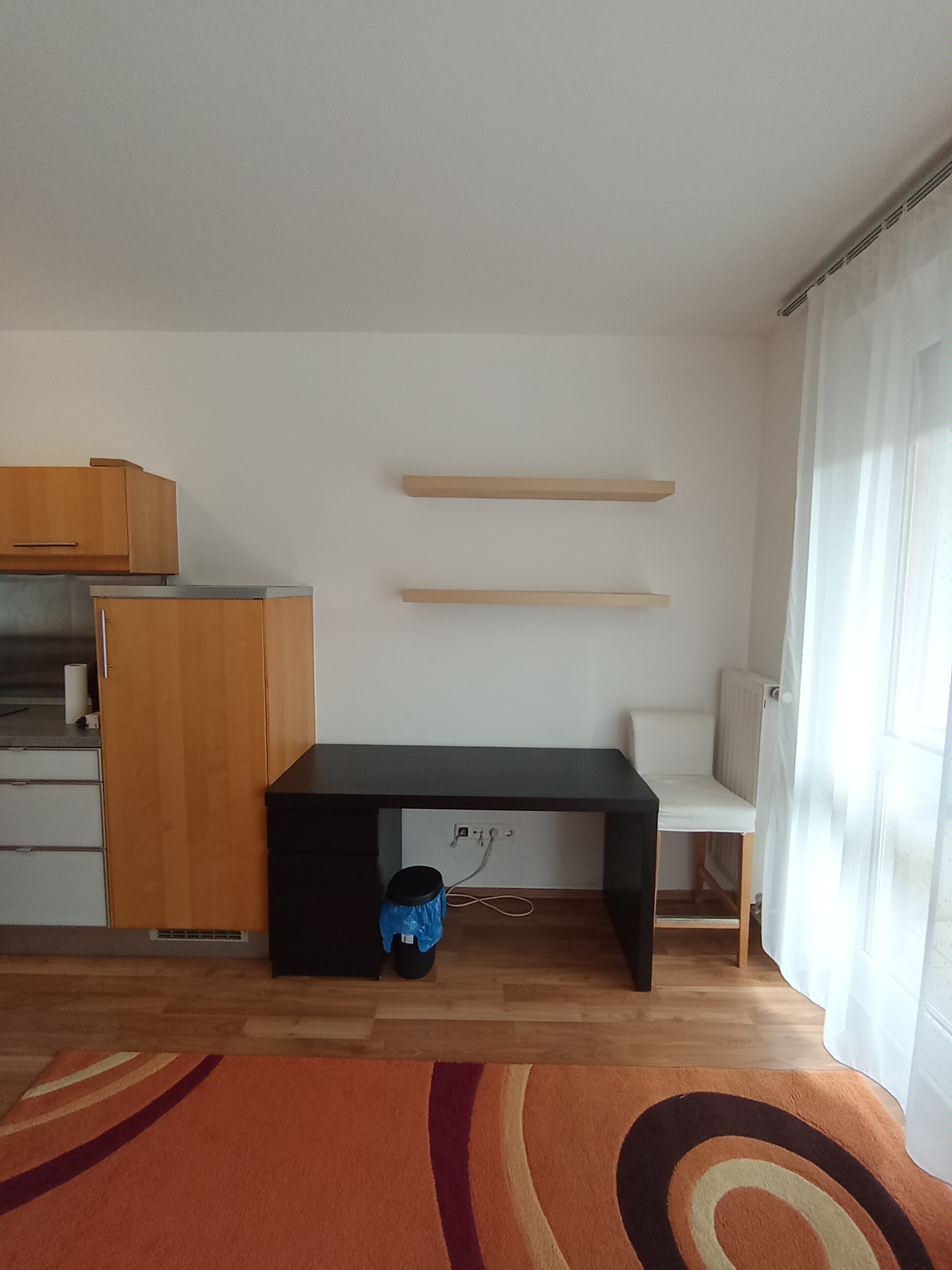 A szobában került kialakításra egy konyha rész, ahol található elektromos sütő, főzőlap, nagy méretű hűtő és páraelszívó.
