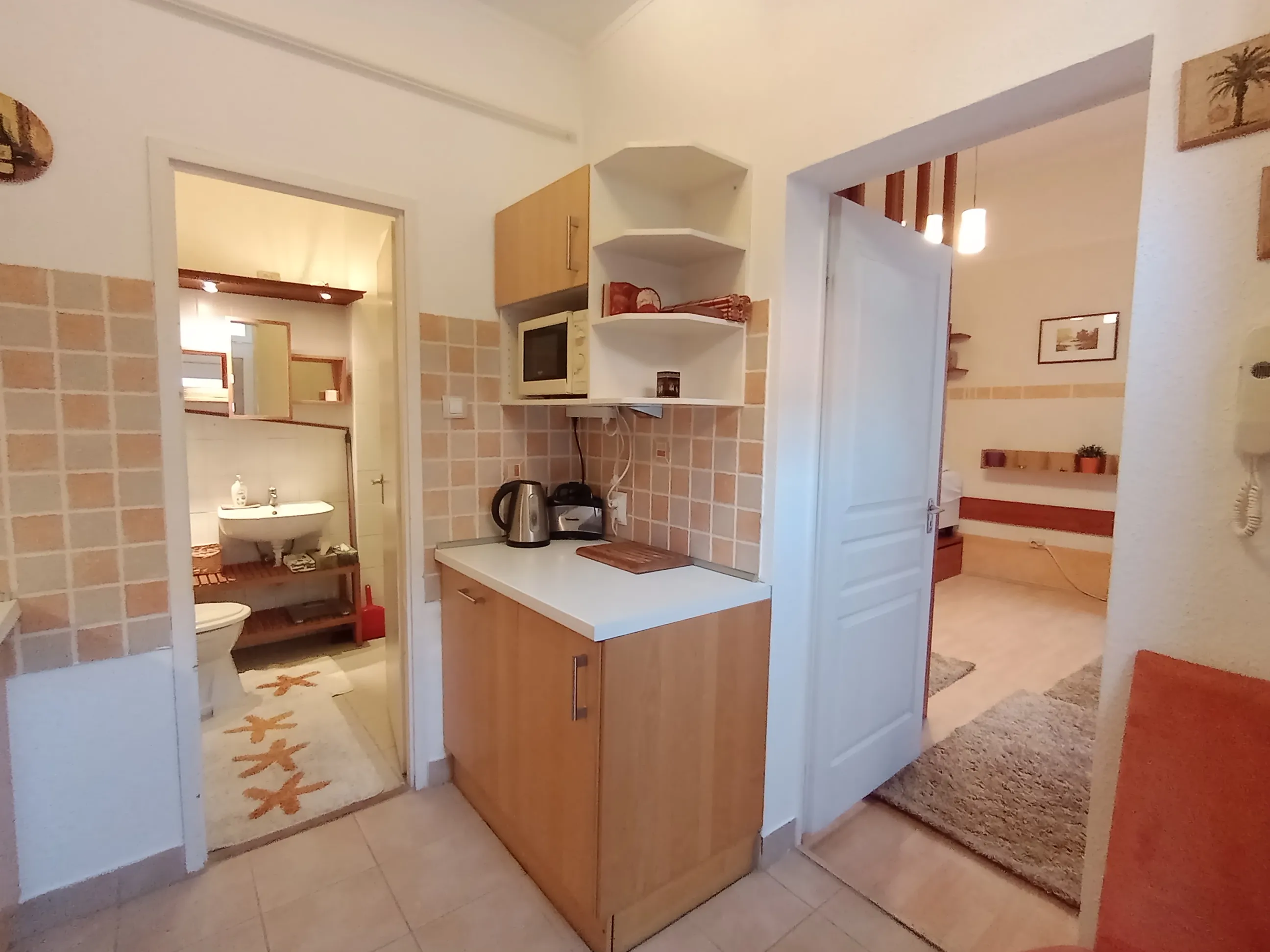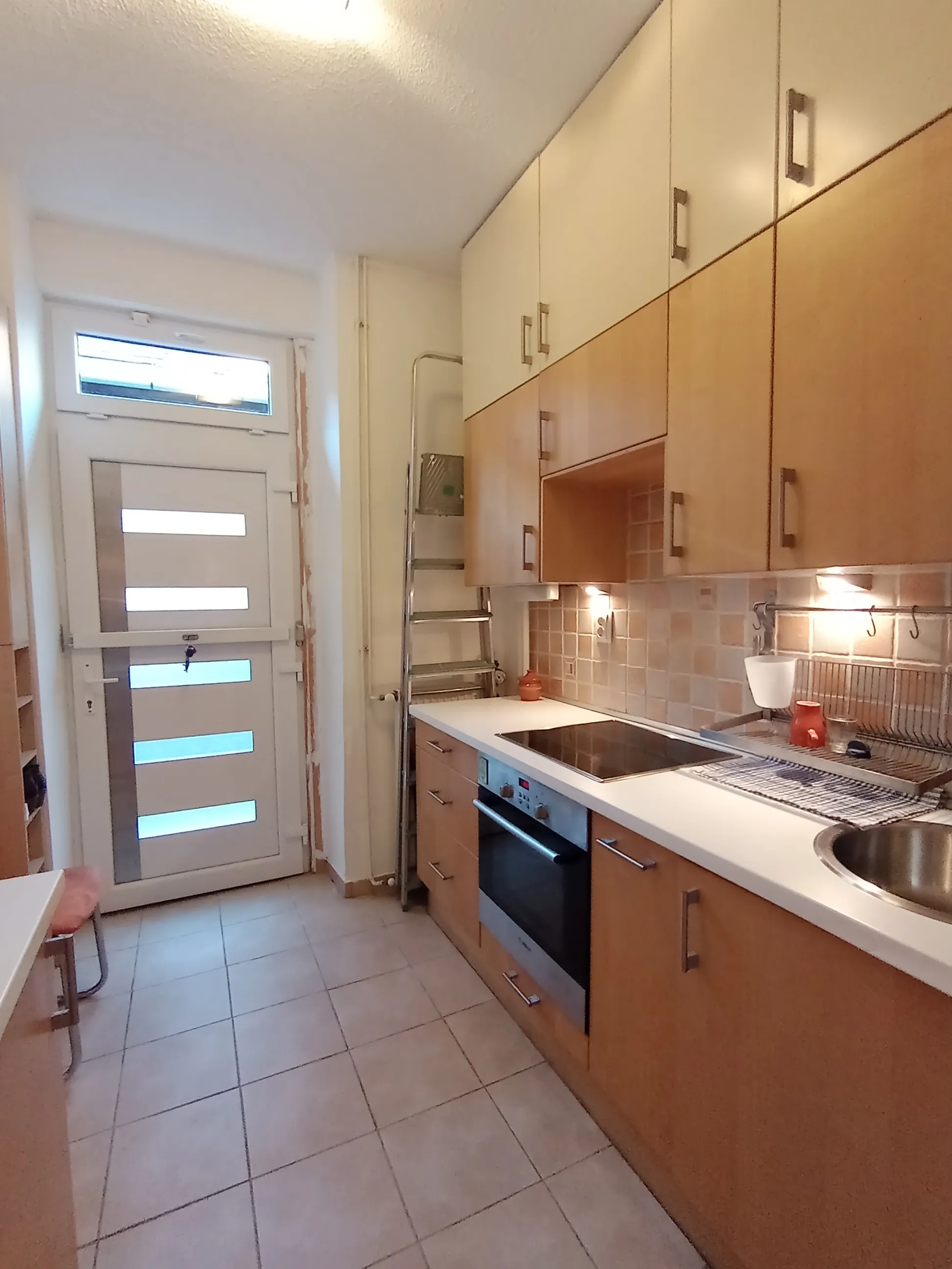 A 28 m2-es lakás egy csendes utcában lévő társasház harmadik emeletén helyezkedik el - lift nincs.